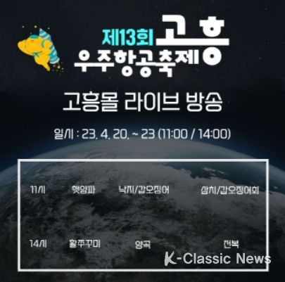 K-Classic News 김성연 기자 | 고흥군에서 직영하는 온라인 쇼핑몰인 ‘고흥몰’에서는 4년 만에 열리는 ‘제13회 고흥우주항공축제’와 연계해 ‘네이버 쇼핑 라이브’에서 햇양파, 주꾸미, 갑오징어 등 싱싱하고 다양한 고흥 제철 농수산물을 판매한다고 밝혔다.