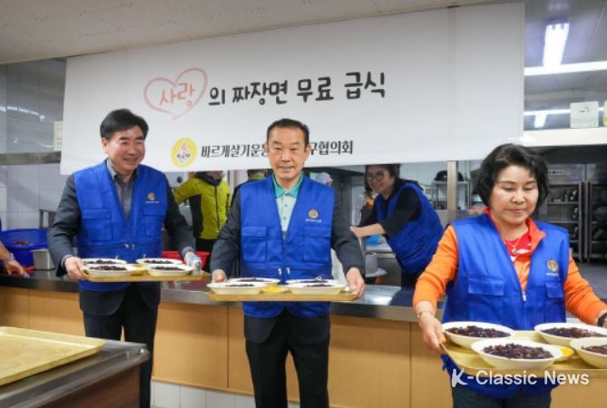 K-Classic News 김성연 기자 | 바르게살기운동 부산진구협의회에서는 18일 초읍동 신애재활원에서 짜장면 무료급식 행사와 성품 전달식을 함께 실시했다.