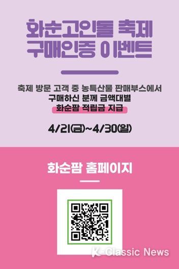 K-Classic News 이호민 기자 | 화순군은 4월 21일부터 30일까지 10일간 유네스코 세계문화유산으로 지정된 화순 고인돌 유적지 일대에서 개최되는 고인돌 축제와 화순팜을 연계한 이벤트(방문 및 구매인증)를 진행한다.