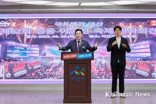 K-Classic News 김성연 기자 | 아트밸리 아산 제62회 성웅 이순신 축제 개막이 8일 앞으로 다가온 가운데, 박경귀 아산시장이 기자회견을 가졌다.