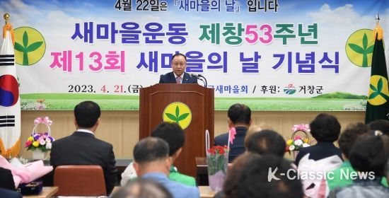 K-Classic News 김성연 기자 | 거창군새마을회는 21일 거창군새마을회관에서 구인모 군수를 비롯한 새마을 남·녀지도자 등 60여 명이 참석한 가운데 새마을운동 제창 53주년 제13회 ‘새마을의 날(4월 22일)’ 기념식을 개최했다고 전했다.