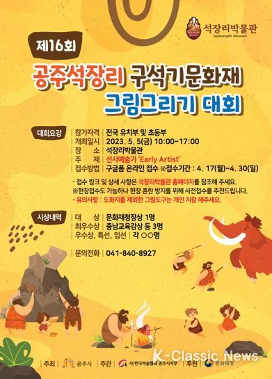 K-Classic News 이호민 기자 | 공주시가 석장리구석기 축제가 개막하는 오는 5월 5일 석장리박물관 일원에서 제16회 석장리 구석기문화재 그림그리기 대회를 개최한다.