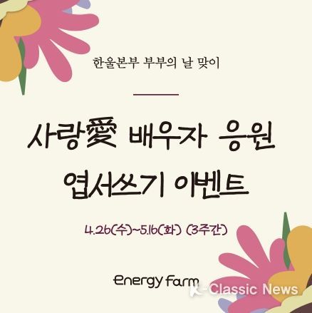 K-Classic News 김성연 기자 | 한국수력원자력(주) 한울원자력본부는 26일부터 5월 16일까지 3주간 한울에너지팜 방문객 대상으로 ‘사랑愛 배우자 응원 엽서쓰기’ 이벤트를 시행한다.