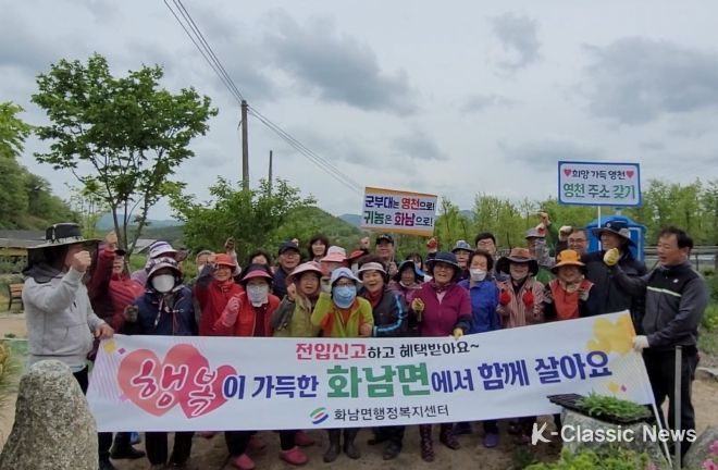 K-Classic News 김성연 기자 | 영천시 화남면 안천1리 주민 30여 명이 지난 24일 안천마을 도로변 곳곳에 직접 키운 모종을 심으며 명품 꽃길 가꾸기에 힘을 쏟았다.