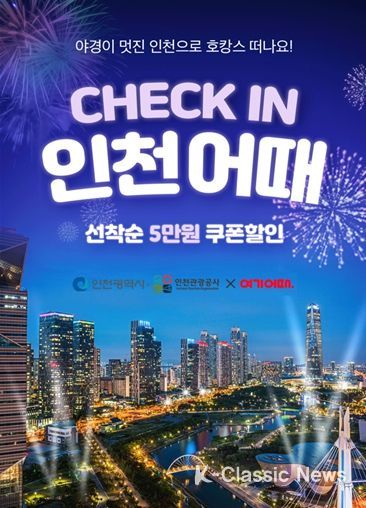 K-Classic News 김성연 기자 | 인천광역시와 인천관광공사는 체류형 관광객 유치 및 야간관광 활성화를 위한 숙박상품 기획전, ‘올 나이츠 럭셔리 인천(alll nights Luxury INCHEON)’을 4월 25일부터 온라인 여행플랫폼인 ㈜여기어때에서 개최한다고 밝혔다.
