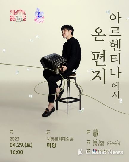 K-Classic News 이호민 기자 | 해동문화예술촌에서 준비한 4월의 문화가 있는 날 프로그램은 반도네온 김국주 밴드의 '아르헨티나에서 온 편지'라는 주제의 탱고음악 공연이다.