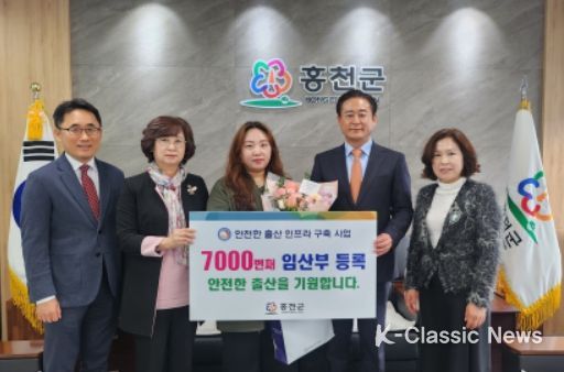 K-Classic News 김성연 기자 | 강원대학교병원 안전한 출산 인프라 구축 사업단 7,000번째 등록 임신부 기념행사가 4월 26일 홍천군청 군수 접견실에서 진행됐다.