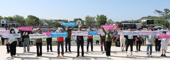 참여자들은 나비대축제 개막을 하루 앞둔 27일 오전 축제가 열리는 함평엑스포공원에 집결해 함평천 수변공원을 함께 걸었다.