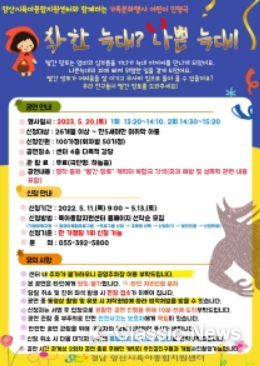 '착한늑대? 나쁜늑대!'인형극 신청은 5월 11일부터 양산시육아종합지원센터 홈페이지에서 선착순 100가정 신청 가능하다.