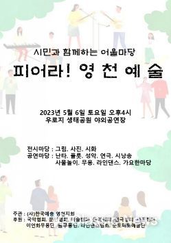 K-Classic News 김성연 기자 | 한국예술문화단체총연합회 영천지회는 5월 6일 우로지 자연생태공원에서 ‘피어라! 영천예술’이라는 주제로 시민과 함께하는 행사를 개최한다.
