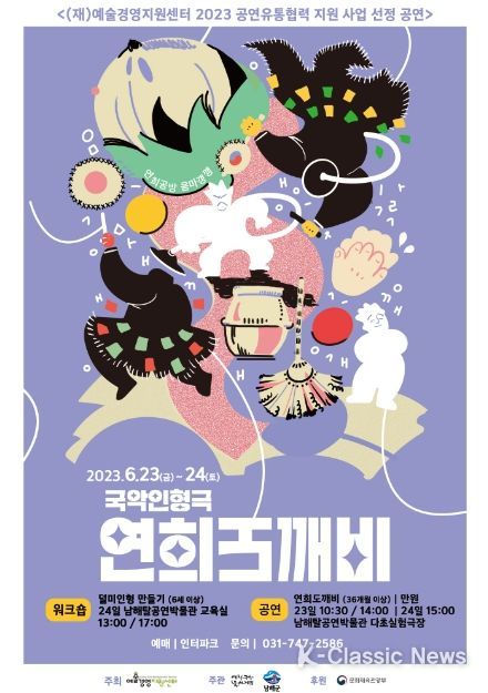 K-Classic News 기자 | 남해군 남해탈공연박물관과 연희공방 음마갱깽은 오는 23일과 24일 양일간 남해탈공연박물관(이동면 남해대로 2412)에서 ‘2023 공연유통협력지원사업’ 일환으로 '연희도깨비'를 공연한다.