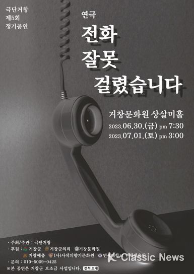 K-Classic News 기자 | 거창군은 ‘2023년 제5회 극단거창 정기공연’이 오는 6월 30일 오후 7시 30분, 7월 1일 오후 3시 2일간 거창문화원 상살미홀에서 열린다고 전했다.