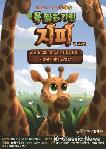 K-Classic News 기자 | (재)거창문화재단은 6월 22일 토요일 오전 11시와 오후 2시에 거창문화센터 공연장에서 어린이 가족뮤지컬 ‘목 짧은 기린 지피’를 개최한다고 전했다.