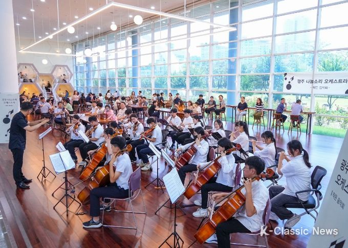 광주광역시는 6일 점심시간을 이용해 1층 시민홀에서 지역 청소년들로 구성된 ‘광주 나눔소리 오케스트라’가 작은 음악회를 열어 시청을 찾은 시민과 직원들에게 아름다운 선율을 선사했다.
