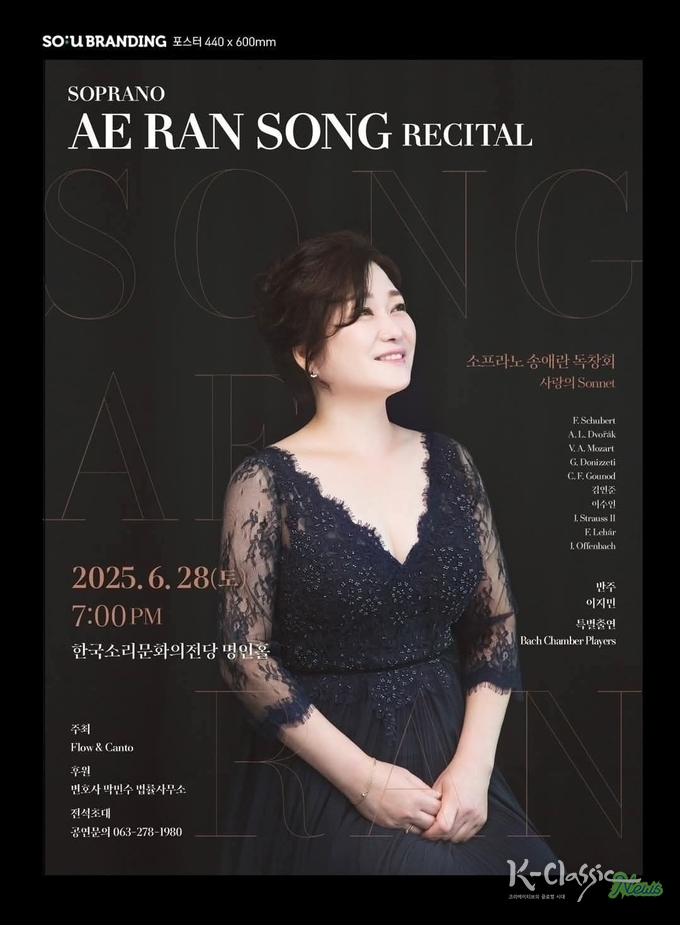 K-Classic News 오형석 기자 | 전북 음악교육 현장을 지켜온 소프라노 송애란이 오는 6월 28일(토) 오후 7시, 전주 한국소리문화의전당 명인홀에서 인생 첫 독창회를 연다.