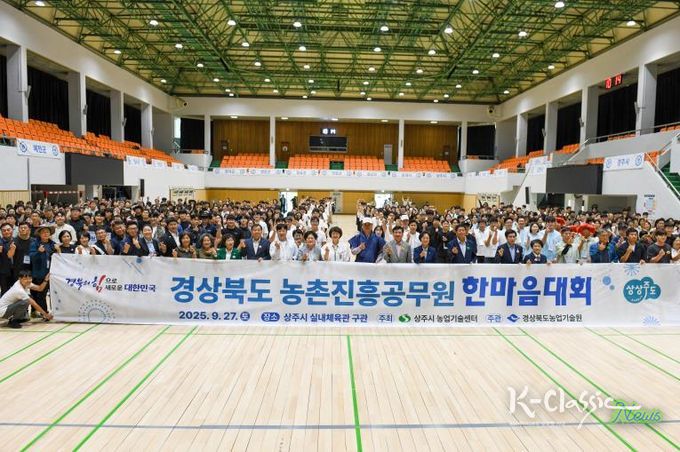 K-Classic News 기자 | 경상북도 농촌진흥공무원들의 화합과 결속을 다지는 ‘경상북도 농촌진흥공무원 한마음대회’가 9월 27일 오전 9시 30분부터 상주실내체육관 구관에서 성대하게 진행됐다. 이번 대회는 상주시농업기술센터와 경상북도농업기술원 공동 주최·주관으로 진행되며, 도내 농촌지도직, 연구직, 일반직 등 농촌진흥공무원 540여 명이 함께했다.