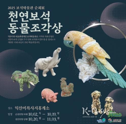 K-Classic News 기자 | 익산시 보석박물관은 추석 연휴가 시작되는 10월 2일부터 11월 3일까지 익산미륵사지휴게소(양방향)에서 '천연보석 동물조각상' 순회전시를 진행한다.