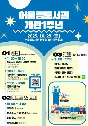 K-Classic News 기자 | 남원어울림도서관 개관 1주년을 맞아 오는 10월 25일(토) 9시부터 도서관 내·외부에서 시민과 함께하는 행사를 개최한다.