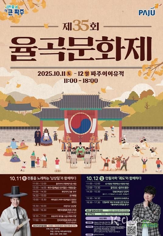 K-Classic News 기자 | 파주시는 오는 10월 11일부터 12일까지 이틀간, 파주이이유적에서 다양한 문화예술 프로그램을 통해 선생의 사상을 되새기는 ‘제35회 율곡문화제’를 개최한다고 밝혔다.