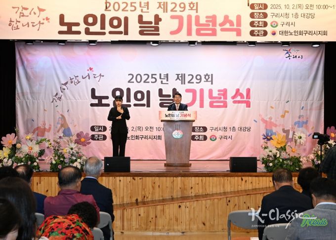 K-Classic News 기자 | 구리시는 노인의 날을 맞아 10월 2일 오전 10시 구리시청 1층 대강당에서 제29회 노인의 날 기념식을 열고 지역 어르신들과 뜻깊은 시간을 가졌다.