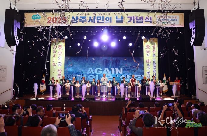 K-Classic News 기자 | 상주시는 Again, 慶尙의 꿈 ‘상주’를 주제로 한 시민의 날 기념식을 10월 2일 상주문화회관 대공연장에서 개최했다. 상주시민의 날(매년 10월 12일)을 앞두고 개최된 이날 기념식에는 상주시 노인회장과 읍면동 분회장 등 지역 원로들과, 각급 기관·단체장, 출향인 등 500여 명의 시민이 함께해 Again, 慶尙의 꿈의 실현을 향한 염원을 한데 모았다.