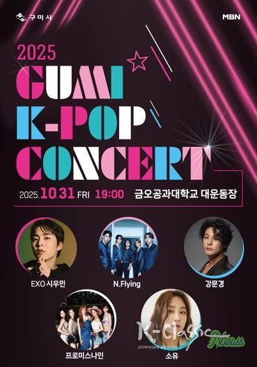 K-Classic News 기자 | 구미시는 오는 10월 31일 오후 7시, 국립금오공과대학교 대운동장에서 '2025 구미 K-POP 콘서트'를 개최한다. 이번 공연은 전 세대가 함께 즐길 수 있는 야외 콘서트로 마련됐다. 아이돌·발라드·밴드·트로트까지 아우르는 폭넓은 장르의 최정상급 아티스트들이 출연해 가을밤 구미를 화려하게 수놓는다.
