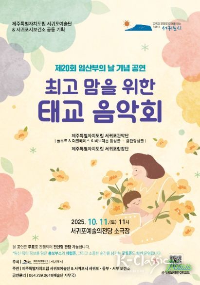 K-Classic News 기자 | 서귀포시는 오는 10월 11일 11시 서귀포예술의전당 소극장에서 제주특별자치도립 서귀포예술단과 서귀포보건소가 공동으로 주관하는 제20회 임산부의 날 기념 공연 '최고 맘을 위한 태교음악회'를 개최한다.