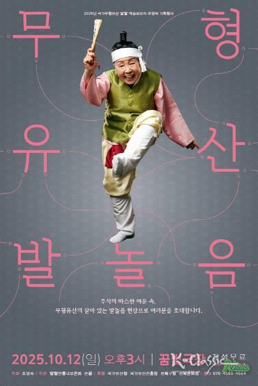10월 12일 오후 3시 성북구 꿈빛극장(성북구 길음로7길 20 서울성북미디어문화마루 4층)에서 펼쳐지는 국가무형유산 발탈 예능보유자 조영숙 명인의 '무형유산 발놀음'이다. 성북구청 외에도 국가유산청과 국가유산진흥원, 성북문화원이 후원했다.