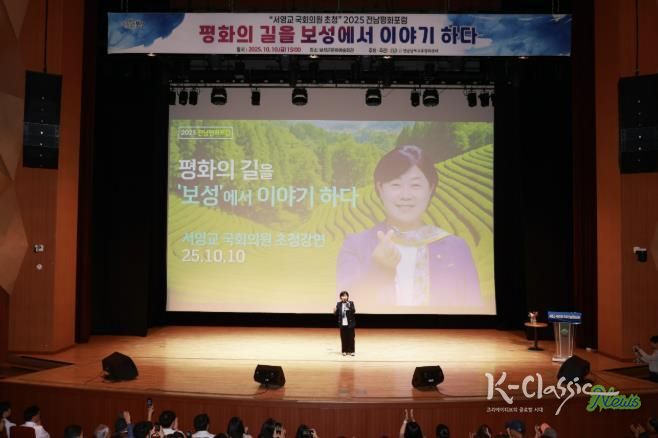K-Classic News 기자 | 보성군은 지난 10일 보성군문화예술회관에서 개최된 ‘서영교 국회의원 초청 2025 전남평화포럼’이 군민 700여 명이 참석한 가운데 성황리에 마무리됐다고 밝혔다.