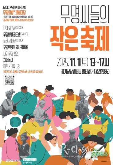K-Classic News 기자 | 경기문화재단은 경기도 무명의병 기념사업의 일환으로, 오는 11월 1일 무명씨들의 작은 축제 ‘무명의병 체험마당’을 개최한다. 이번 행사는 일제에 항거했던 수많은 무명의병들의 서사를 민족적 저항과 함께 보편적 가치의 새로운 위상을 알리기 위해 기획됐다.