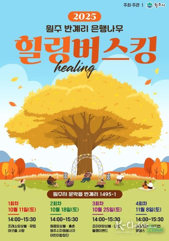 홍순필 원주시 관광과장은 “반계리 은행나무 광장에서 가족 및 지인들과 함께 버스킹 공연을 즐기며 음악과 웃음이 있는 가을을 보내시길 바란다”라고 말했다.