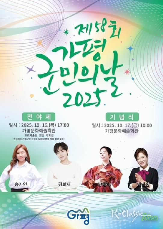 K-Classic News 기자 | 가평군은 오는 16일 오후 5시, 새롭게 리모델링을 마친 가평문화예술회관에서 ‘제58회 가평군민의 날 전야제’를 개최한다. 이번 행사는 ‘다시, 가평으로’를 슬로건으로 내세워 수해 극복과 지역 재도약을 기원하며 군민 화합의 의미를 담아 열린다.