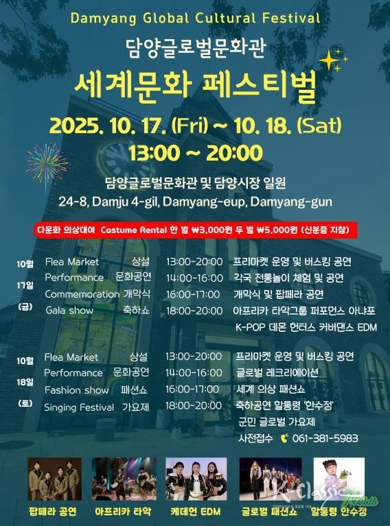 K-Classic News 기자 | 담양군은 오는 17일부터 이틀간 담양글로벌문화관과 담양오일시장 일원에서 ‘세계문화페스티벌’을 연다고 밝혔다.