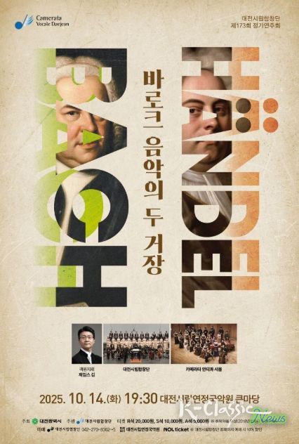 K-Classic News 기자 | 대전시립합창단은 14일 오후 7시 30분 대전시립연정국악원 큰마당에서 제173회 정기연주회 ‘바흐와 헨델’을 선보인다.