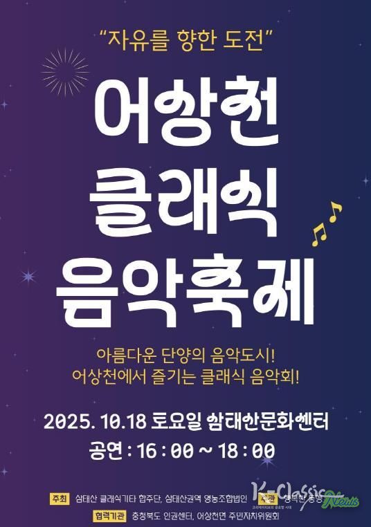 K-Classic News 기자 | 충북 단양군은 오는 18일, 어상천 삼태산문화센터에서 ‘제3회 어상천 클래식음악축제’가 열린다고 밝혔다.