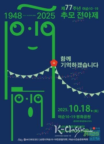 K-Classic News 기자 | 순천시와 (재)순천문화재단은 오는 18일 순천 여순10·19평화공원(순천시 역전길 127) 일대에서 ‘제77주년 여순10·19사건 추모전야제’를 개최한다.