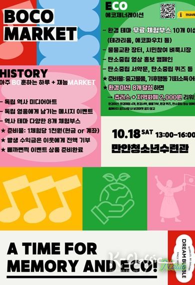 K-Classic News 기자 | 안양시청소년재단 소속 만안청소년수련관은 오는 10월 18일 청소년과 시민이 함께하는 ‘환경과 역사를 잇다 - BOCO MARKET & E-G 페스티벌’을 개최한다고 15일 밝혔다.