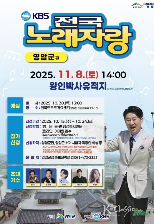 K-Classic News 기자 | 영암군이 KBS전국노래자랑 예심 참가자를 15~24일 선착순 300명 모집한다.