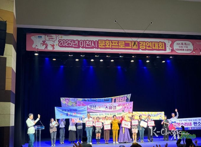 K-Classic News 기자 | 이천시는 2025년 10월 15일 이천아트홀 소공연장에서 14개 읍면동 약 450명의 시민과 함께 각 지역의 특색있는 문화와 예술적 역량을 발휘하는 ‘이천시 문화프로그램 경연대회’를 성황리에 마쳤다고 밝혔다.