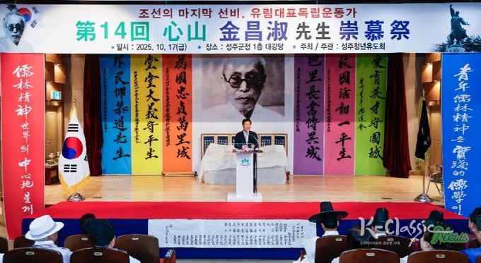 K-Classic News 기자 | 성주군은 지난 17일 성주군청 대강당에서 성주청년유도회 주관으로 제14회 심산 김창숙선생 숭모제를 개최했다.