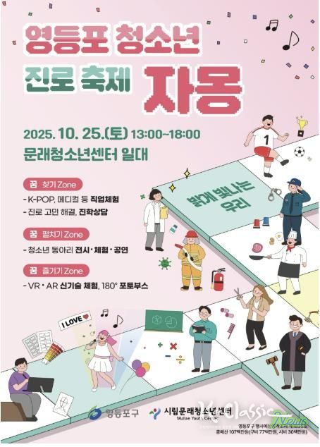 K-Classic News 기자 | 영등포구가 오는 25일 문래청소년센터에서 청소년이 직접 기획하고 참여하는 ‘청소년 진로축제 자몽’을 개최한다고 밝혔다. ‘자몽’은 ‘스스로 꿈꾸다’라는 뜻으로, 청소년들이 자기주도적으로 진로를 탐색하고 다양한 체험을 통해 미래 역량을 키우는 것을 목표로 한다.