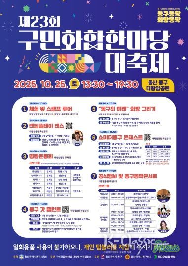 K-Classic News 기자 | 울산 동구는 오는 10월 25일 오후 1시 30분부터 대왕암공원 일대에서 제23회 구민화합한마당 대축제를 개최한다.
