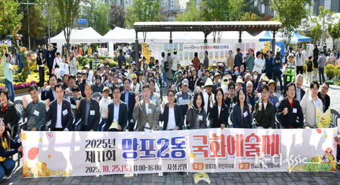 K-Classic News 기자 | 지난 25일 수원시 영통구 망포2동은 지성공원(영통구 동탄지성로 520)에서‘제11회 망포2동 국화예술제’를 개최했다. 이번 행사는 태장동부터 개최한 행사로 올해 11회를 맞이한 망포2동을 대표하는 지역 축제로, 다채로운 볼거리와 즐길거리를 통해 주민들의 눈과 마음이 함께 즐거운 화합의 장을 마련했다.