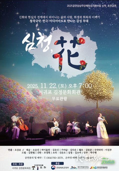 K-Classic News 기자 | 서귀포시는 11월 22일 오후 5시, 김정문화회관에서 전통 판소리와 제주 무속 신화를 결합한 창작 음악극 '심청, 花' 공연을 개최한다고 밝혔다.