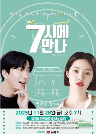 K-Classic News 기자 | 우리 삶에 가장 찬란한 순간 중 하나인 사랑에 대한 추억과 익숙한 노래가 함께 어우러지는 뮤직 드라마 연극 ' 7시에 만나 '가 오는 27일 오후 7시 김제문화예술회관 대공연장에서 펼쳐진다.