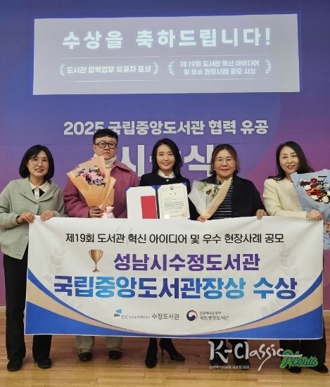 K-Classic News 기자 | 성남도시개발공사 수정도서관은 국립중앙도서관이 주최한 ‘제19회 도서관 혁신 아이디어 및 우수 현장사례 공모’에서 국립중앙도서관장상을 수상했다고 21일 밝혔다.