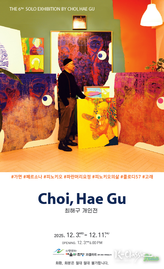 K-Classic News 오형석 기자 |2025년 12월 3일부터 11일까지 안동문화예술의전당 35갤러리에서 열리는 최해구 작가의 여섯 번째 개인전은 익숙한 동화적 모티프 속에서 인간의 가장 깊은 심리를 끌어올리는 전시로 주목받고 있다. 이번 전시는 작가가 여러 해 동안 탐구해온 ‘가면’, ‘페르소나’, ‘피노키오’, ‘고래’라는 상징적 세계를 총체적으로 담아내며, 회화적 서사를 기반으로 한 독창적인 조형언어를 선보인다.