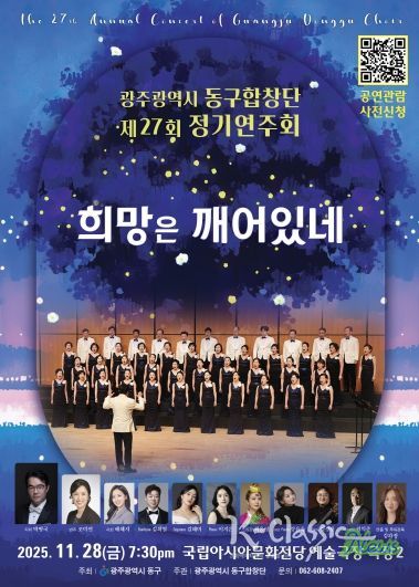 K-Classic News 기자 | 광주 동구는 동구합창단이 오는 28일 오후 7시 30분 국립아시아문화전당 예술극장 극장2에서 ‘제27회 정기연주회 희망은 깨어있네(Hope is Awake)’를 개최한다고 밝혔다.