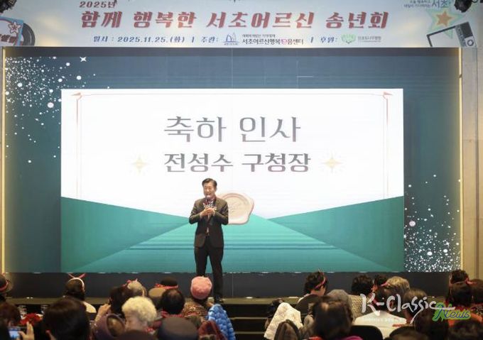 K-Classic News 기자 | 서울 서초구는 지난 25일 양재 엘타워 5층 오르체홀에서 지역 독거어르신과 노인맞춤돌봄서비스 생활지원사 등 250여명과 함께 ‘서초어르신 송년회’를 개최했다고 밝혔다.