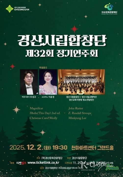 K-Classic News 기자 | 경산시립합창단이 오는 12월 2일 오후 7시 30분 영남대학교 천마아트센터 그랜드홀에서 2025년 마지막 정기연주회를 개최한다.